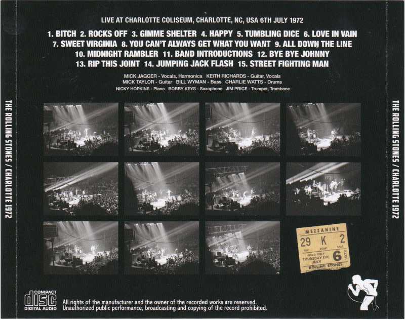 Bootleg comments: Released: 2025. Origin: Japan. MATRIX: E3833 Charlotte 1972 Excellent Stereo Audience recording. Very Good stereo channels separation. The performance itself is very close, and you can experience a thick, mellow, dense sound with a good balance from low to high frequencies. Missing Brown Sugar and the beginning of "Midnight Rambler" was not recorded due to the turn of the tape. REMASTERED BY GRAF ZEPPELIN first 260 copies will be released with a numbered sticker on front. |