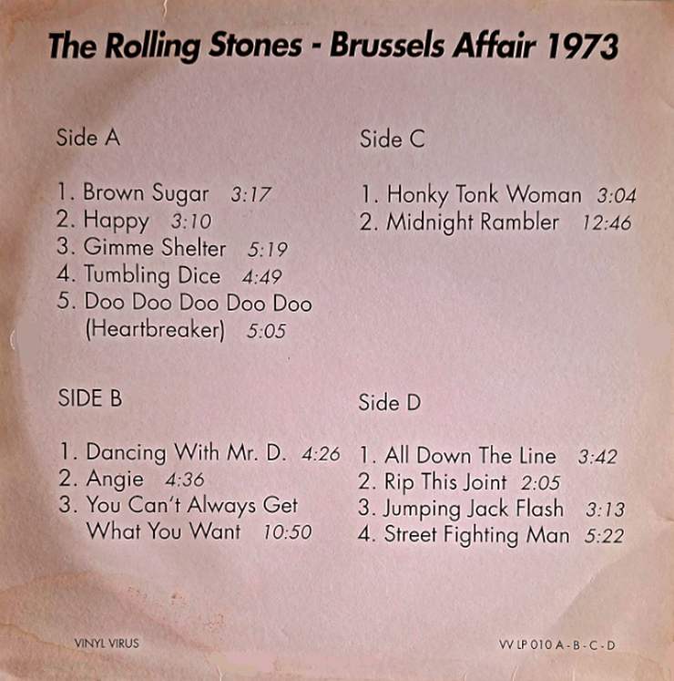 Bootleg comments: Released: 1992. Origin: Europe MATRIX: VV-LP 010 - A // -B // -C // -D Excellent Stereo Soundboard Recordings. Taken from Radio Broadcast . | |||||||||||||||||||||||||||||||||