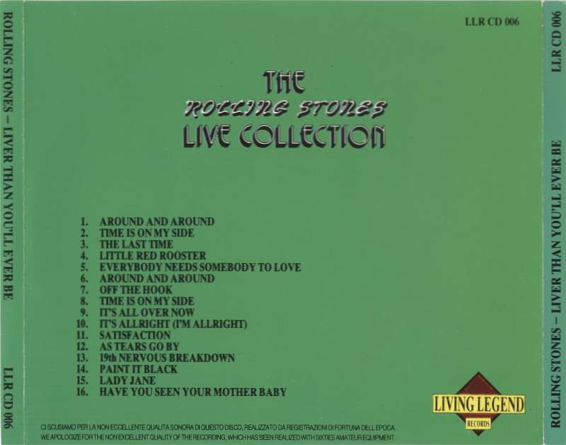 Bootleg comments: Released: 1988. Origin: Italy. MATRIX: INTERPRESS LLRCD-006 11 Very Good Mono recording, taken from vinyl LP including crackles. | |||||||||||||||||||||||||||||||||||