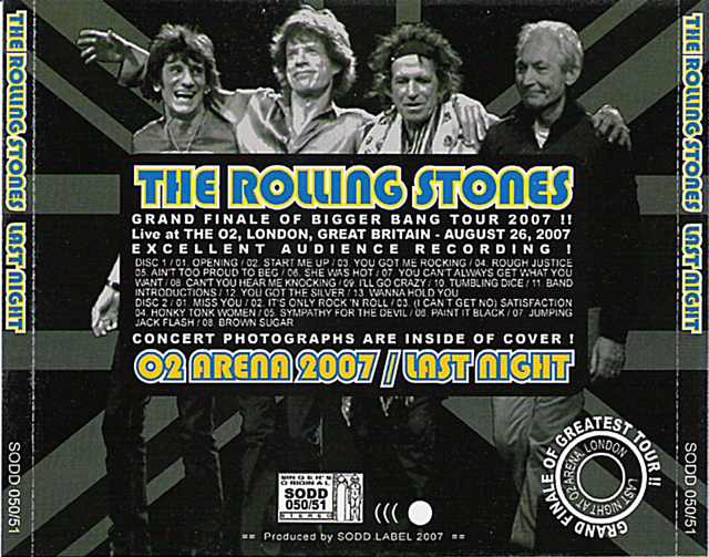 Bootleg comments: Released: 2008. Origin: Japan MATRIX: (CD1) SODD-050 (CD2) SODD-051 Very Good to Excellent Audience recording. Bonus 1DVDR including alternate source in very good to excellent audience. | |||||||||||||||||||||||||||||||||||||||||||||||