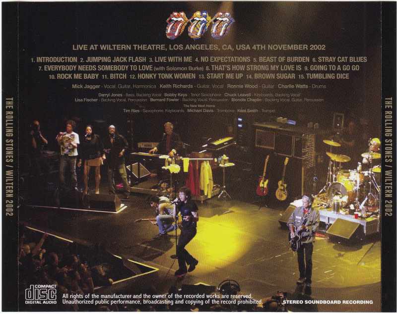 Bootleg comments: Released: 2022. Origin: Japan MATRIX: Wiltern 2002. Excellent Stereo Soundboard Recording. Incomplete show. Taken from BBC broadcast 2022. | |||||||||||||||||||||||||||||||