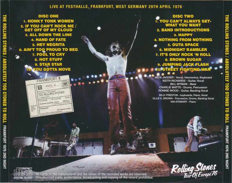 ABSOLUTELY TOO STONED TO ROLL: FRANKFURT 1976 2ND NIGHT No Label [-] , 2 CD |