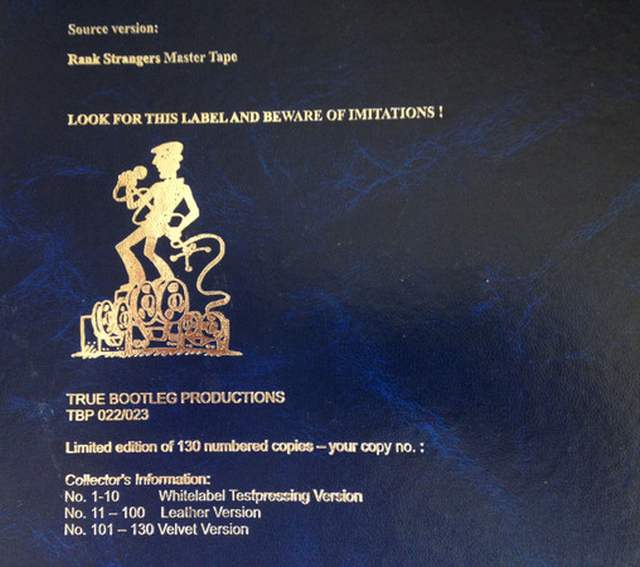 Bootleg comments: Released: 2016. Origin: Europe. Very Good Mono Audience recording., Taken from Rank Stranger Master source tape. Almost complete show. Limited edition of 130 numbered copies: 1-10 White label Testpressing version 11-100 leather version 101-130 velvet version Includes a mini poster. | |||||||||||||||||||||||||||||||||